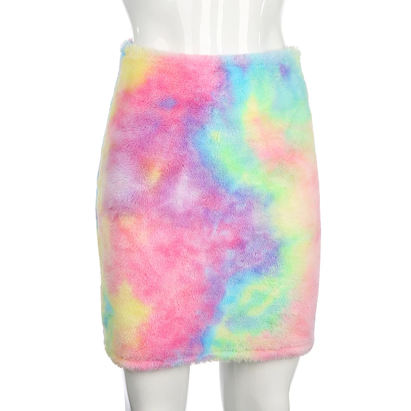 awesome Sweetown Cute Sexy Tie Dye Woolen Two Piece Set Women Crop Top And Skirt Set Winter Fashion Ladies