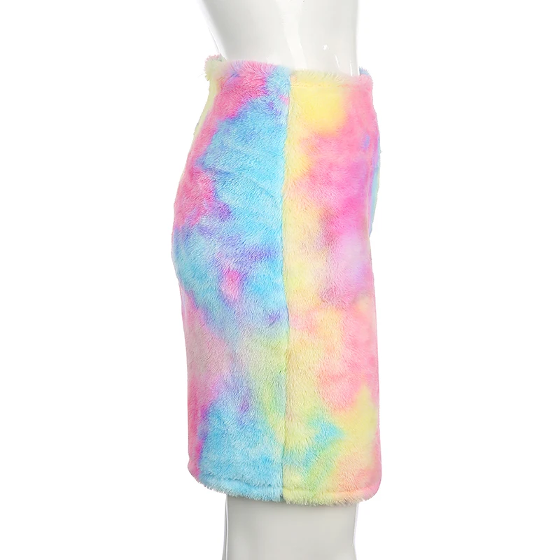 lower price Sweetown Cute Sexy Tie Dye Woolen Two Piece Set Women Crop Top And Skirt Set Winter Fashion Ladies