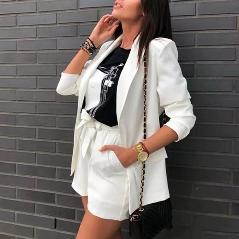 Ideal 2019 summer new sexy red apricot women's suit long-sleeved jacket shorts office sets casual 2 piece
