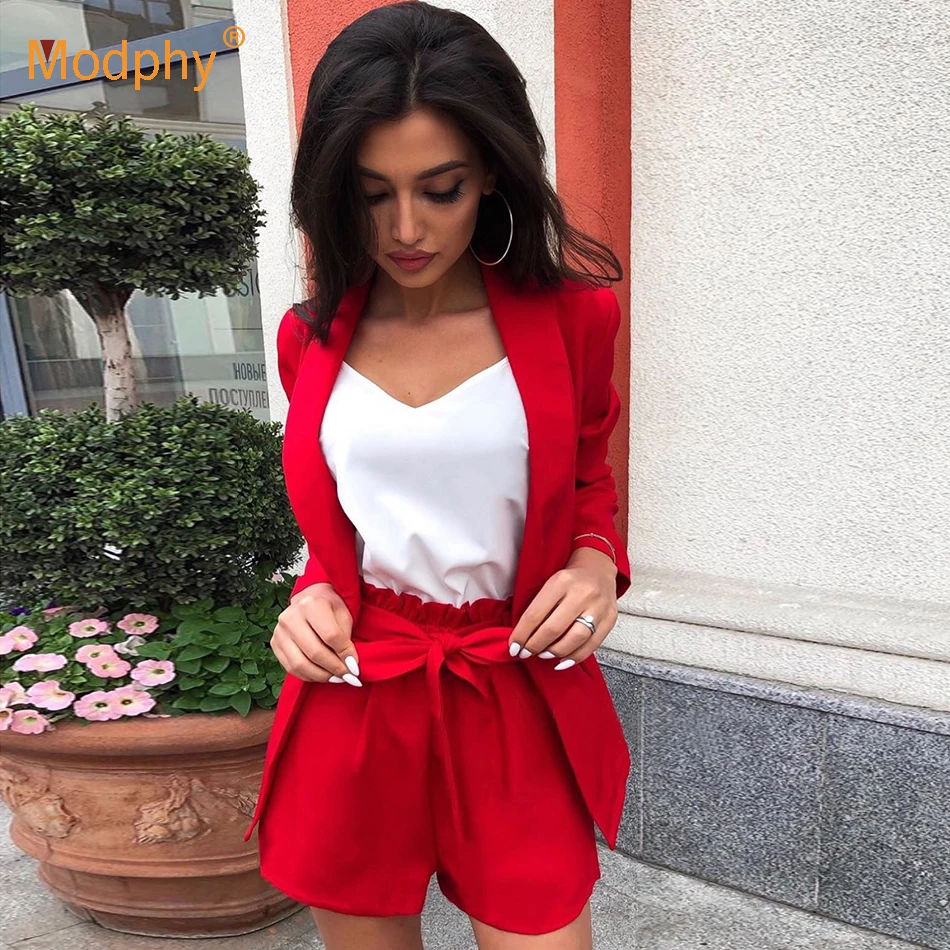 wonderful 2019 summer new sexy red apricot women's suit long-sleeved jacket shorts office sets casual 2 piece