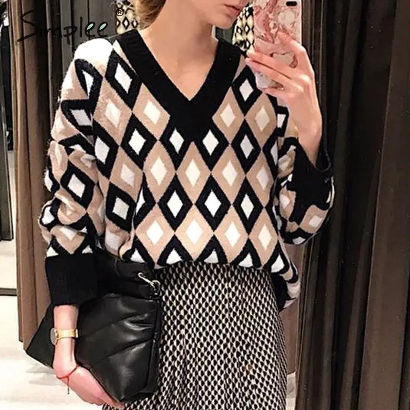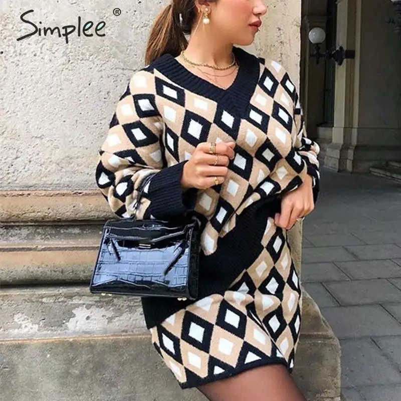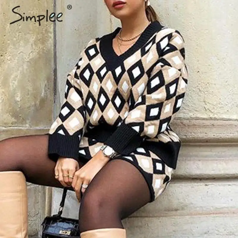 lower price Simplee V-neck casual women sweater sets Autumn winter streetwear chic female suit sets Office ladi