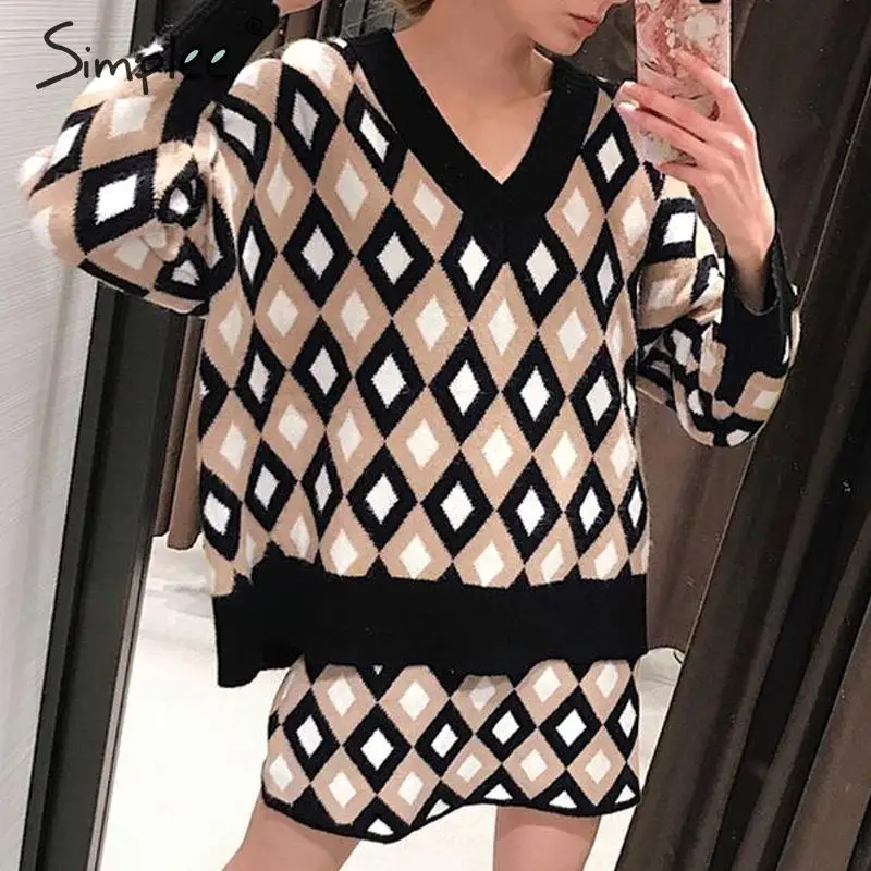 incredible Simplee V-neck casual women sweater sets Autumn winter streetwear chic female suit sets Office ladi