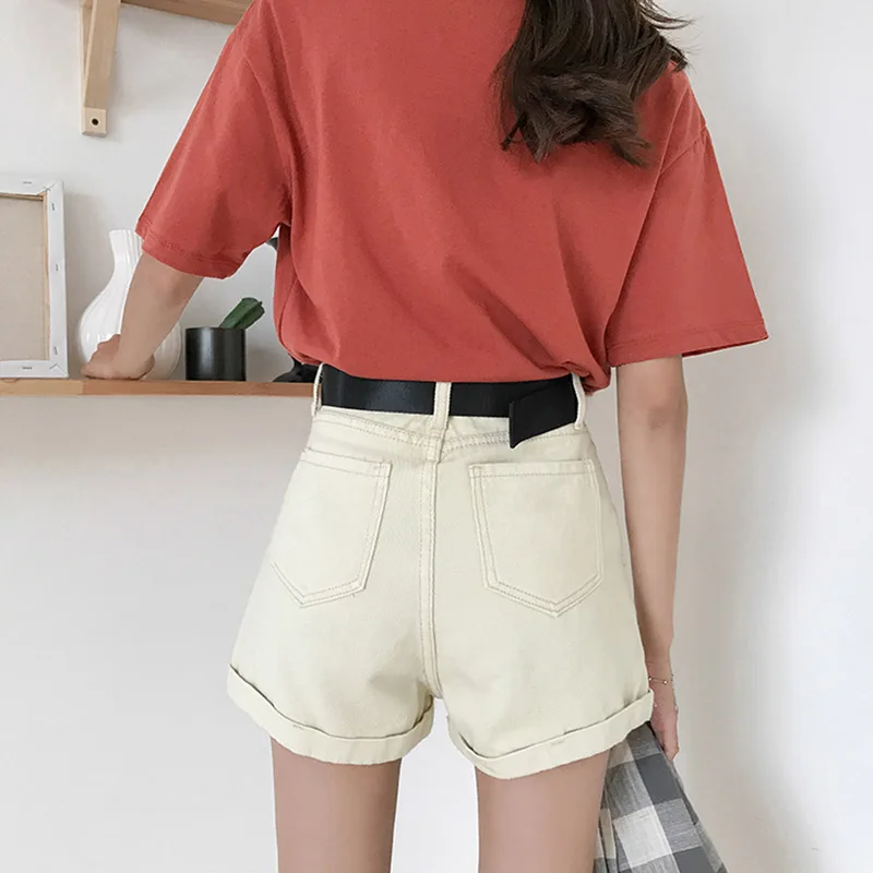 New New Summer Autumn Casual Sashes Denim Shorts Women Wide High Waist Loose Leg Shorts Slim All-Match